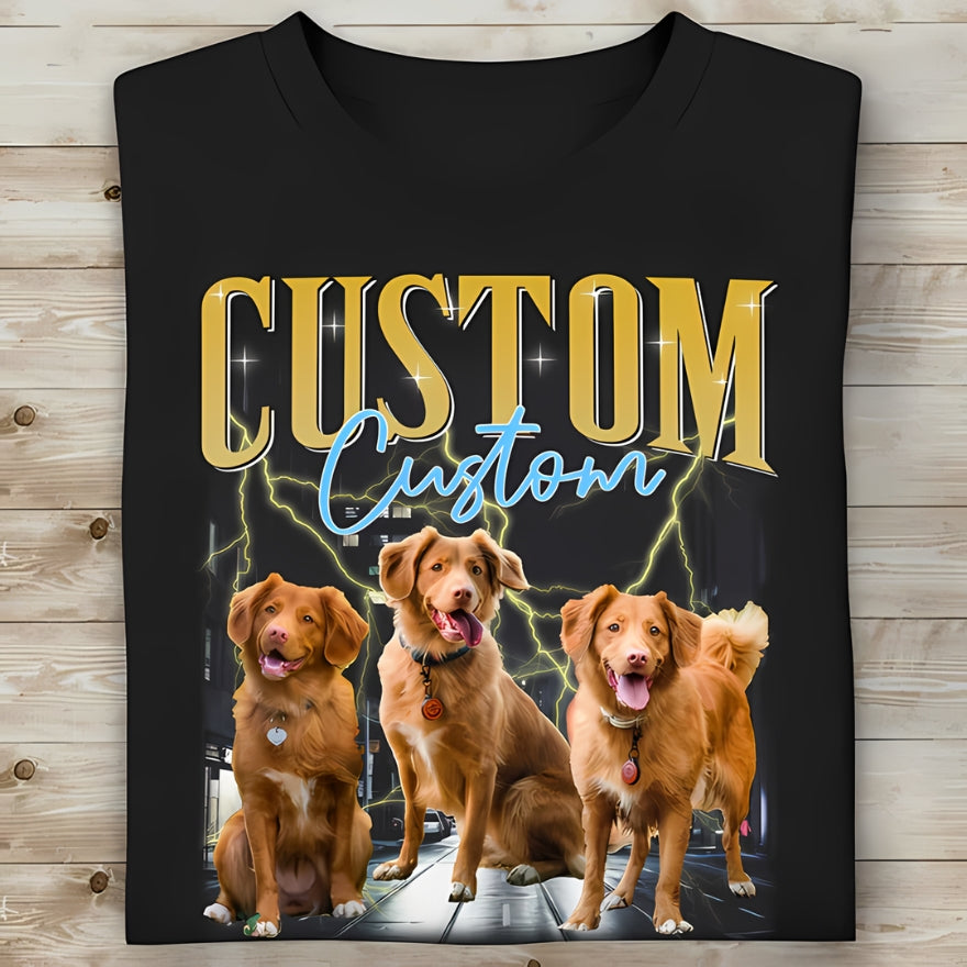 Enhance your wardrobe with our exclusive bootleg-style custom shirts. Celebrate your pets or bring a smile with funny face designs. Crafted from premium materials, these shirts offer a perfect canvas for your memories—ideal for pet enthusiasts or anyone with a flair for unique, playful fashion. Express your individuality with personalized wearable art and make a bold statement wherever you go. Create your custom shirt today and wear your cherished moments with pride!