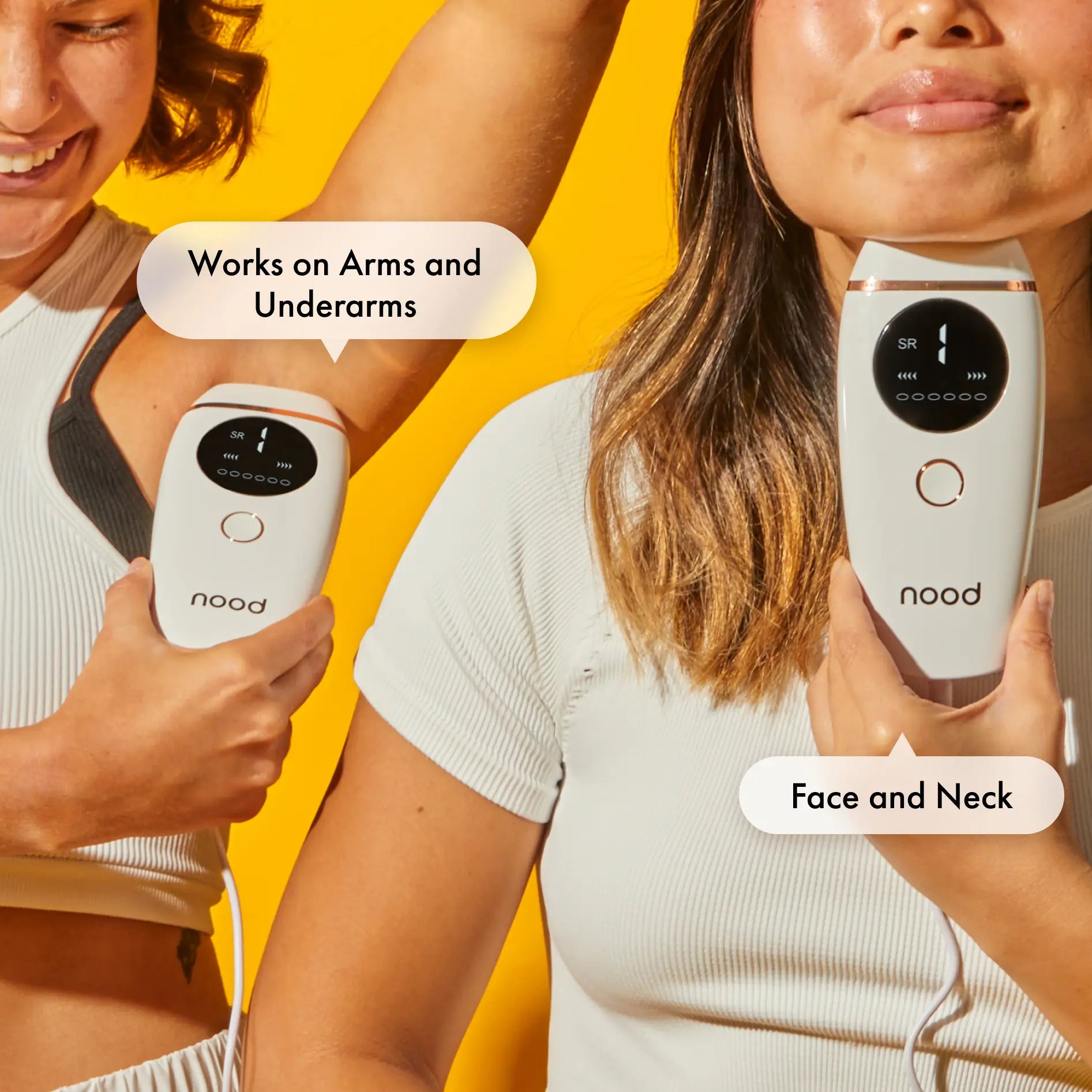 Safely remove unwanted hair with The Flasher 2.0 by Nood. Works everywhere that hair grows, including bikini, Brazilian, underarms, legs, and face. Start seeing results in 2-3 weeks and permanent hair removal in 6-8 weeks.